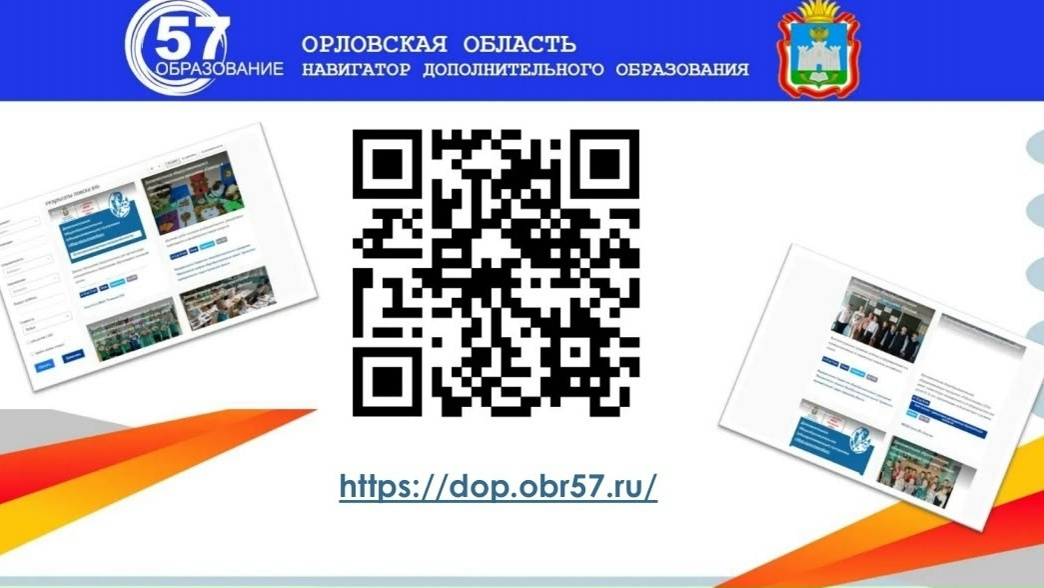 • Родители выбирают занятия и записывают ребенка на обучение на сайте Навигатора дополнительного образования https://dop.obr57.ru/